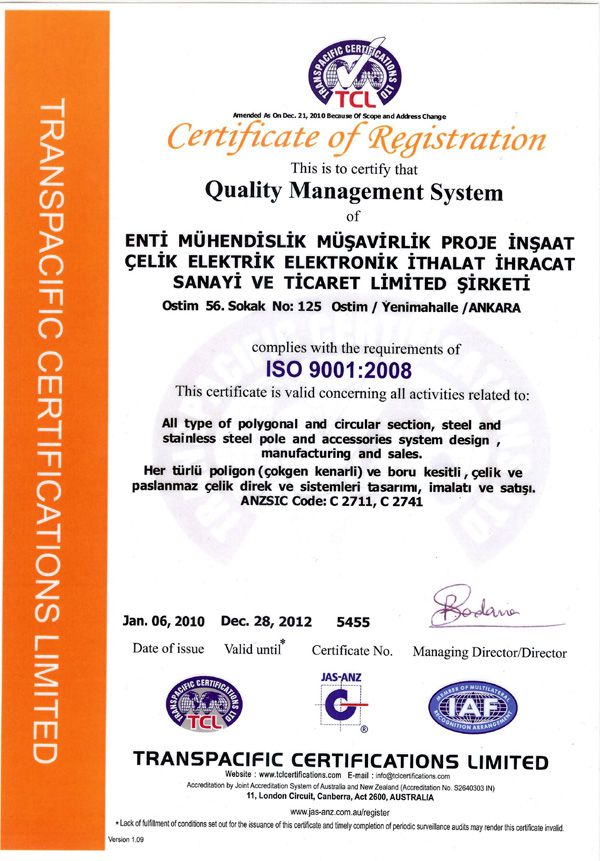 تأسست شركة أنتي مهندسليك المحدودة للصناعة والتجارة في أنقرة سنة 2006، وهي تعمل في مجالات تخطيط المشاريع وتصنيع وتركيب الأعمدة والأبراج، آليات التثبيت والرسو، منتجات الألياف الزجاجية، متكآت الأدراج والشرفات من الفولاذ الغير قابل للصدأ، المتكآت من الألمنيوم، وأنظمة كاميرات الأمان، وذلك في مساحة مغطاة قدرها 2500 متر مربع بكادرها الذي يبلغ 45 موظفاً فنياً وعاملاً.