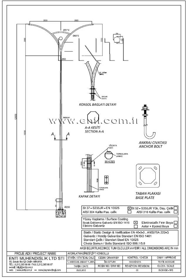 ENTİ Engineering produces lighting poles standing very smart as visually, providing an efficient illumination and assisting to support architectural infrastructure in addition to polygonal and tubular type enlightening poles.