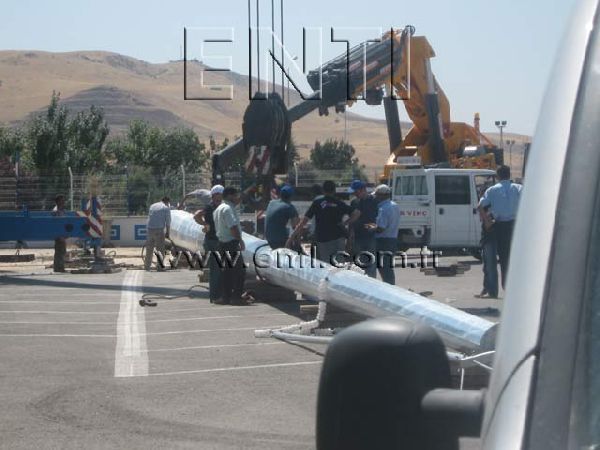 The crane which will be used for mounting may vary depending on the circumstances and the pole. At the normal circumstances, a crane which has minimal boom length of 25 m for the pole of 30 m length is needed. The crane boom may be prolonged up to the 50 m long according to the fields' circumstances.